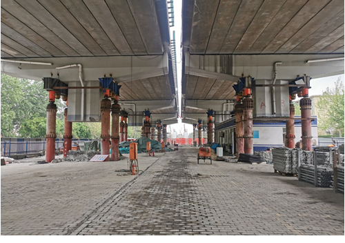| 4月28日16時,由城發(fā)投集團(tuán)所屬市政建設(shè)總公司承建的二環(huán)路內(nèi)外互聯(lián)互通工程關(guān)鍵節(jié)點——南二環(huán)跨紅旗大街橋梁兩側(cè)落地段全部頂升到位。 為實現(xiàn)南二環(huán)石銅路至中華大街全線連續(xù)高架,對現(xiàn)狀南二環(huán)跨紅旗大街橋梁兩側(cè)落地段進(jìn)行調(diào)坡頂升。頂升橋體全長322.6米,雙幅共28跨,采用500噸液壓千斤頂56臺,500噸機(jī)械跟隨頂56臺,總頂力11000噸,頂升高度0.2米—5.15米。 該橋采用“同步整體頂升、分級到位”的施工方案,利用PLC同步液壓控制系統(tǒng)及位移傳感器進(jìn)行頂升控制,實施多點同步頂升和單點獨立控制,同時配備頂升跟隨系統(tǒng),確保施工安全。該技術(shù)具有國內(nèi)領(lǐng)先水平,有效解決了頂升高度高、前后縱坡變化大、各跨高度不一、作業(yè)空間有限、施工工期短等難點問題,相較于傳統(tǒng)拆除重建的做法,橋梁頂升工藝節(jié)省約65%的建造成本,項目施工周期縮短60%,有效降低對周邊環(huán)境和交通的影響。 下一階段,市政建設(shè)總公司將進(jìn)一步精心組織,科學(xué)安排,抓緊進(jìn)行墩柱接長及橋面系后續(xù)工作,優(yōu)質(zhì)高效推進(jìn)二環(huán)路內(nèi)外互聯(lián)互通工程建設(shè),為完善省會路網(wǎng)結(jié)構(gòu),提高道路通行能力,拓展城市空間,促進(jìn)經(jīng)濟(jì)和社會發(fā)展作出自身貢獻(xiàn)。