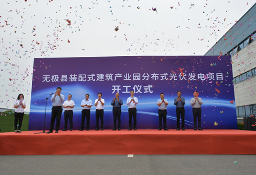 | 5月19日上午,由市政建設(shè)總公司所屬能源投資發(fā)展有限公司投資建設(shè)的無極縣裝配式建筑產(chǎn)業(yè)園分布式光伏發(fā)電項目開工建設(shè)。市國資委黨委委員、副主任楊劍,城發(fā)投集團黨委委員、副總經(jīng)理李宗志,市政建設(shè)總公司總經(jīng)理馬瑞山,市住建集團董事長張瑞彬等領(lǐng)導(dǎo)及施工單位、監(jiān)理單位代表出席開工儀式。李宗志同志宣布項目開工。